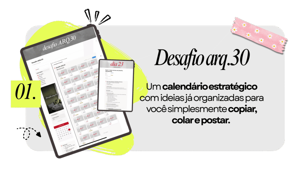 Um calendário de 30 dias com ideias, legendas, formatos e instruções prontas para você simplesmente seguir, postar e começar a gerar movimento no seu perfil.
