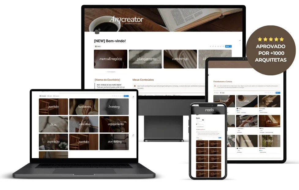Você terá acesso à minha exata estrutura que eu utilizo no meu perfil e que usei para gerir o conteúdo de +80 escritórios de arquitetura e interiores